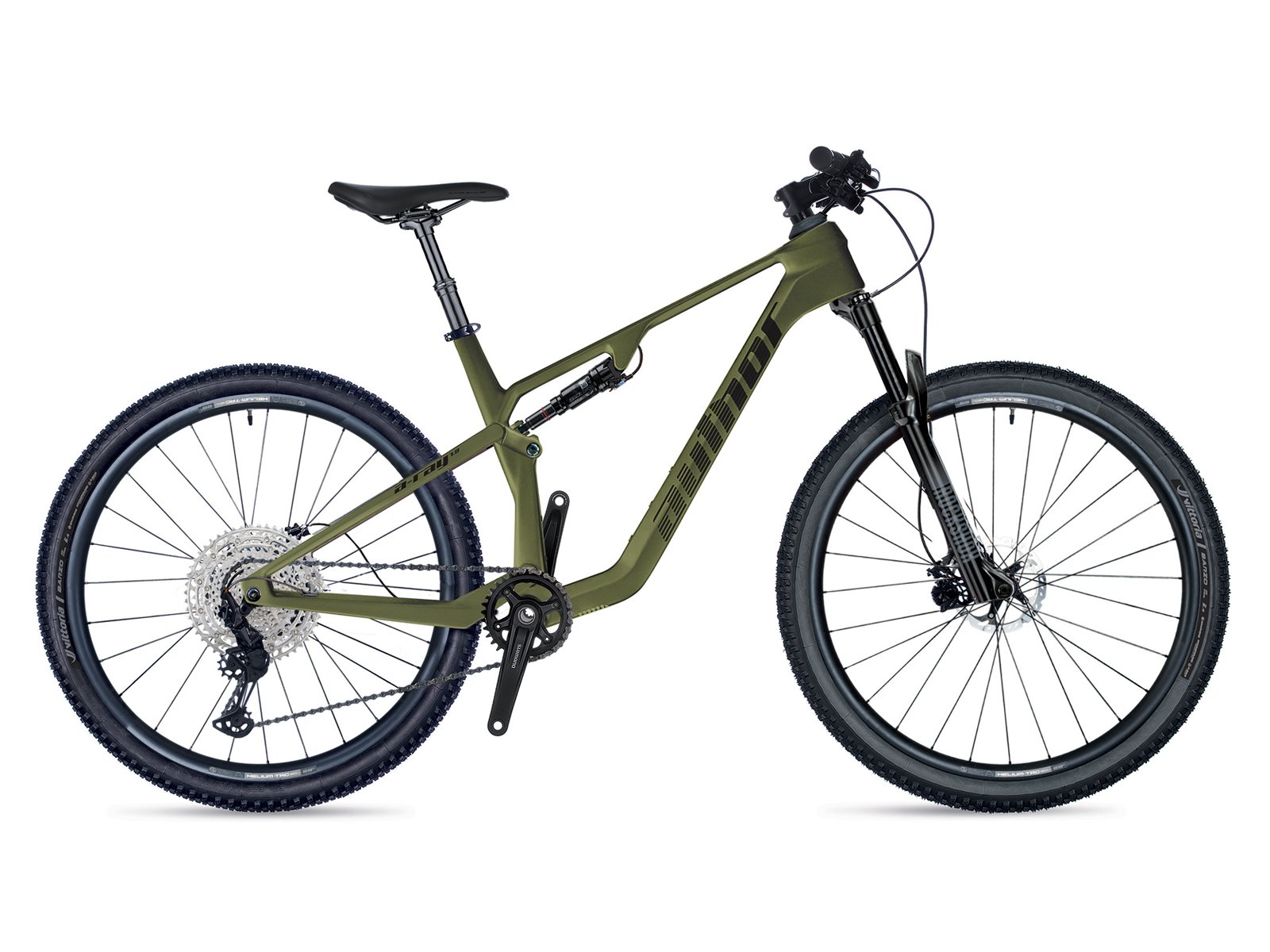 - Základem kola je karbonový rám AUTHOR Toray T700 monocoque se zadním zdvihem 120 mm, doplněný o tlumič ROCK SHOX SID Luxe Select+B2 (190 x 45 mm). Tato kombinace nabízí citlivou práci v terénu, vysokou efektivitu při šlapání a jistotu i na náročnějších trailech.