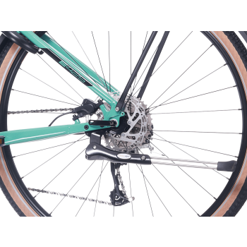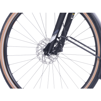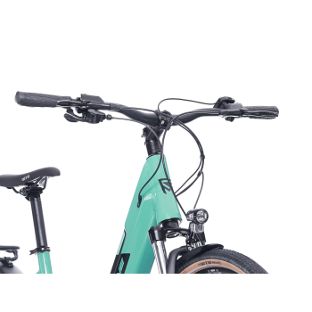 Nový elegantní Mono rám s pohodlným nízkým nástupem pro komfortní jízdu po cyklostezkách a dojíždění ve městě se středovým pohonem Sport Drive s jednoduchým Grip displejem a plně integrovanou baterií, kterou dobijete za 7 hodin. Výkonný systém středového motoru se silou 90 Nm a baterií s kapacitou 504 Wh zajišťují na jedno dobití dojezd až 90 km. Součástí tohoto modelu je plná turistická a městská výbava: nosič, lehké blatníky, světla napájená baterií kola, stojánek nebo praktický zámek. O pohodlí se stará uzamykatelná pružinová vidlice a pohodlné doplňky značek WTB a ONE1.