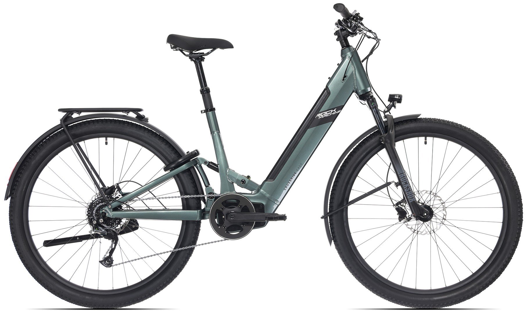 Rock Machine Crossride ve verzi Easy Entry & Exit s odpruženým rámem nabízí jízdní vlastnosti skutečného offroadu s pohodlím městského cruiseru. Díky této rámové platformě už nemusíte jezdit oklikou, celoodpružené kolo zvládne více, než kterékoli cestovatelské kolo před ním. Tento všestranný pomocník dokáže vykouzlit úsměv na tváři nejen během víkendových vyjížděk, ale stejně tak poslouží jako ideální dopravní prostředek. Hliníkový rám v decentním designu je navržen s ohledem na výdrž a kontrolu nad kolem. Pohon zajišťuje osvědčená jednotka Sport Drive se silou 90 Nm. V kombinaci s bateriemi o kapacitě 504 Wh ujede až 90 km. Pro jízdu za snížené viditelnosti je připraveno výkonné světlo AXA Blueline 30.
